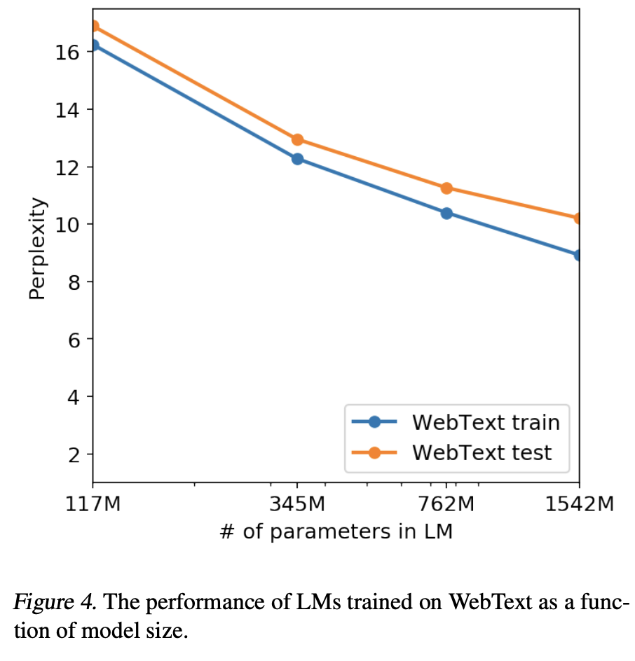 이는 충분히 다양한 test corpus로 training 된 고용량 모델이 Zero-shot setting에서 수행할 수 있는 작업의 다양성이 Language model이 명시적인 감독 없이도 놀라운 양의 작업을 수행하는 방법을 배우기 시작함을 보여준다.
