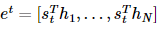 \[a^t = \sum_{i=1}^{N} \alpha _{i}^{t} h_{i}\]