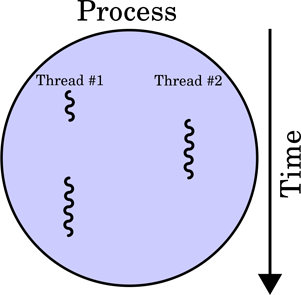 스레드는 프로세스의 실행 흐름의 단위라고 할 수 있다. 한 프로세스 내에서 동작되는 여러 실행 흐름으로 프로세스 내의 주소 공간이나 자원을 공유할 수 있다. 아래 그림은 프로세스가 진행되는 동안 스레드의 실행 과정을 보여준다.