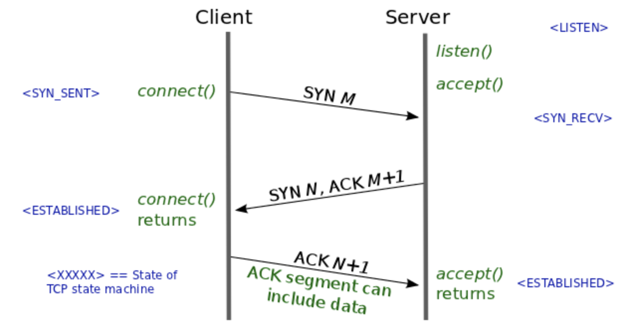 - 클라이언트는 서버의 수락 응답인 ACK M+1과 SYN N 패킷을 받고 ACK N+1을 서버로 보내면 연결이 성립한다.